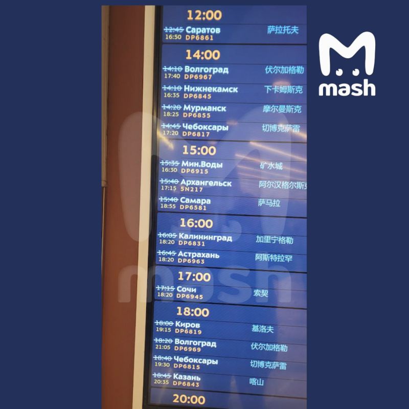 По данным Mash, 20 рейсов на вылет и 86 на прилёт задерживаются в Шереметьево. Среди направлений, которые задержаны на вылет, — Калининград, Уфа, Сочи, Волгоград, Астрахань, Красноярск, Самара, Минеральные Воды.